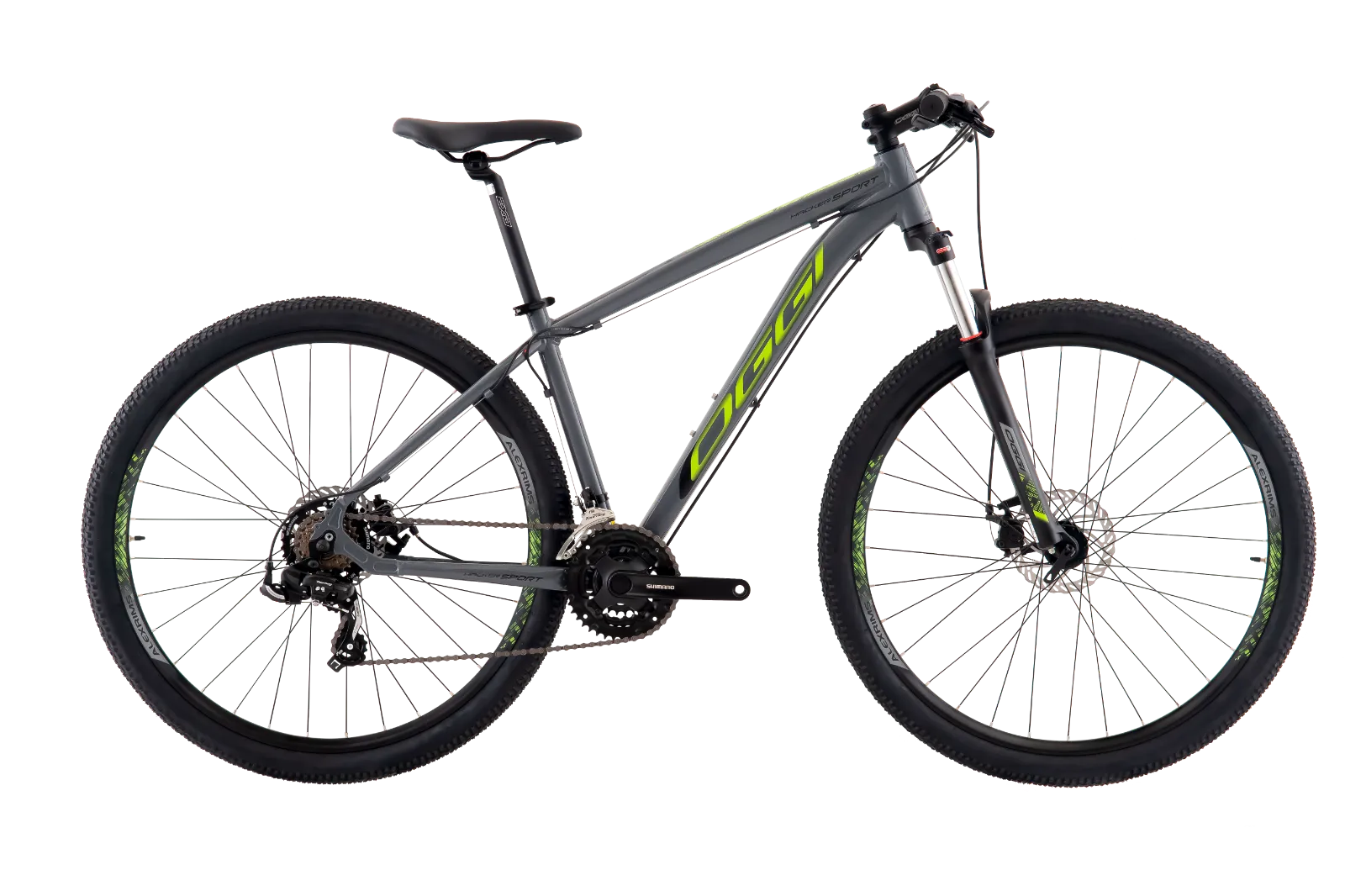BICICLETA MTB ARO 29 OGGI HACKER SPORT 21V SHIMANO TOURNEY TAM 17 GRAFITE/ADES VERDE