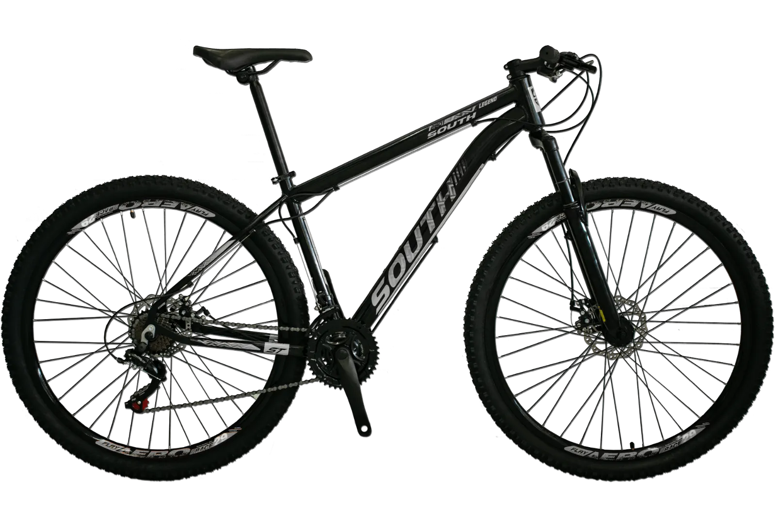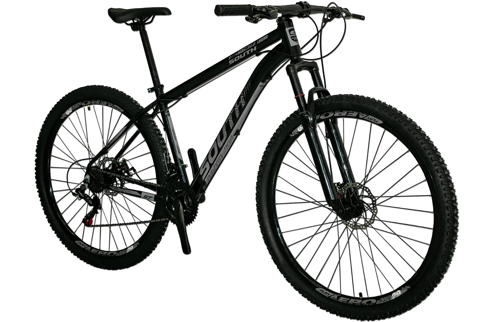 BICICLETA MTB ARO 29 SOUTH LEGEND 21V CÂMBIOS SHIMANO TAM17 PRETO/ADES CINZA