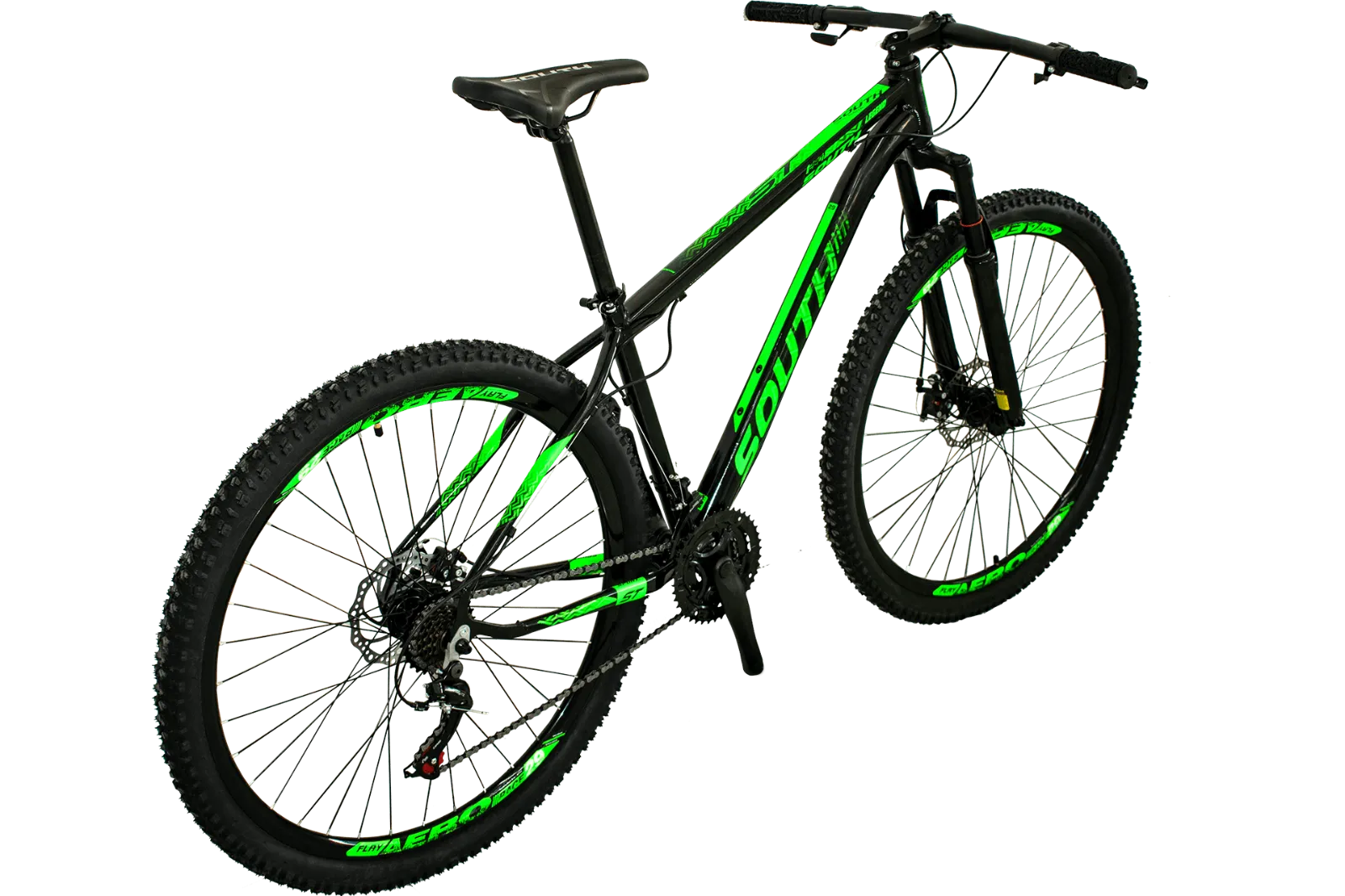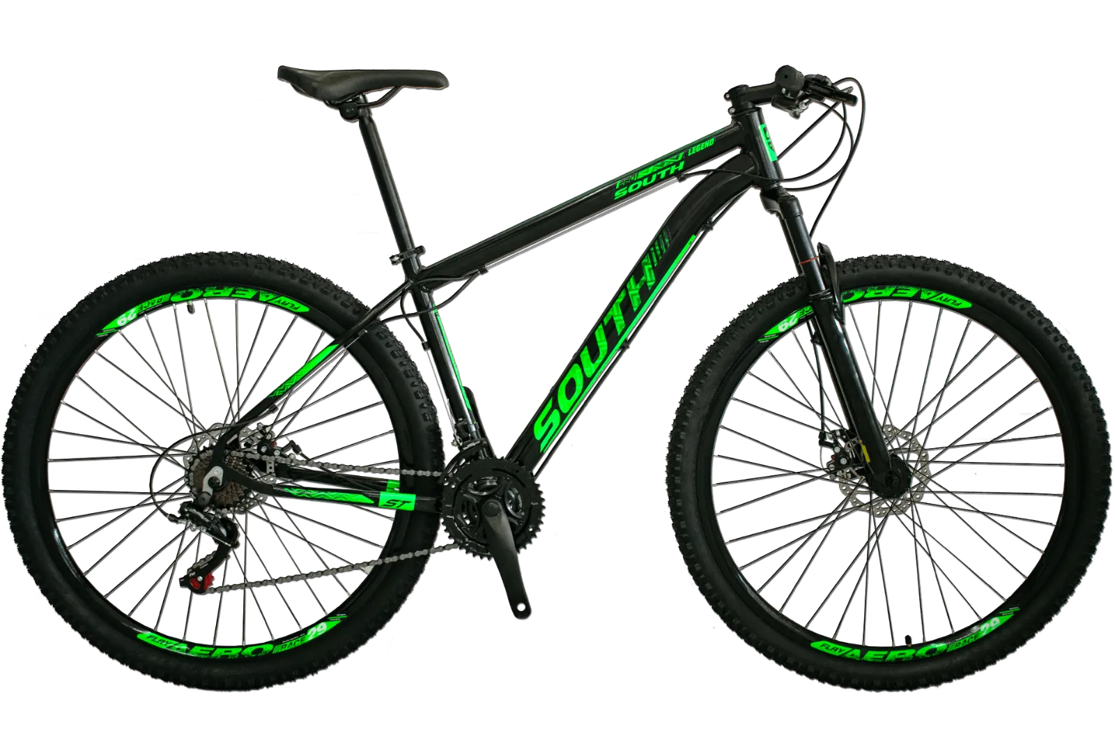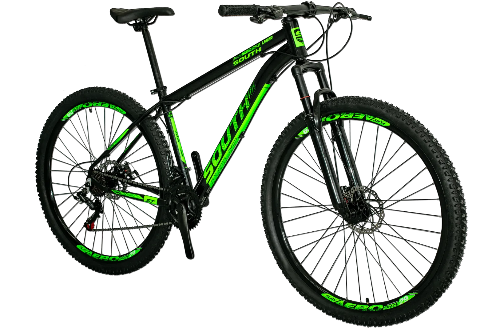 BICICLETA MTB ARO 29 SOUTH LEGEND 21V CÂMBIOS SHIMANO TAM17 PRETO/ADES VERDE